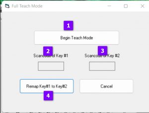 - В открывшемся окне, нажмите Begin Teach Mode.Система предложит нажать кнопку , которую вы хотите заменить (допустим Громкость меньше (находится на F1))Нажимайте кнопку. Её скан код появится в поле Key#1.